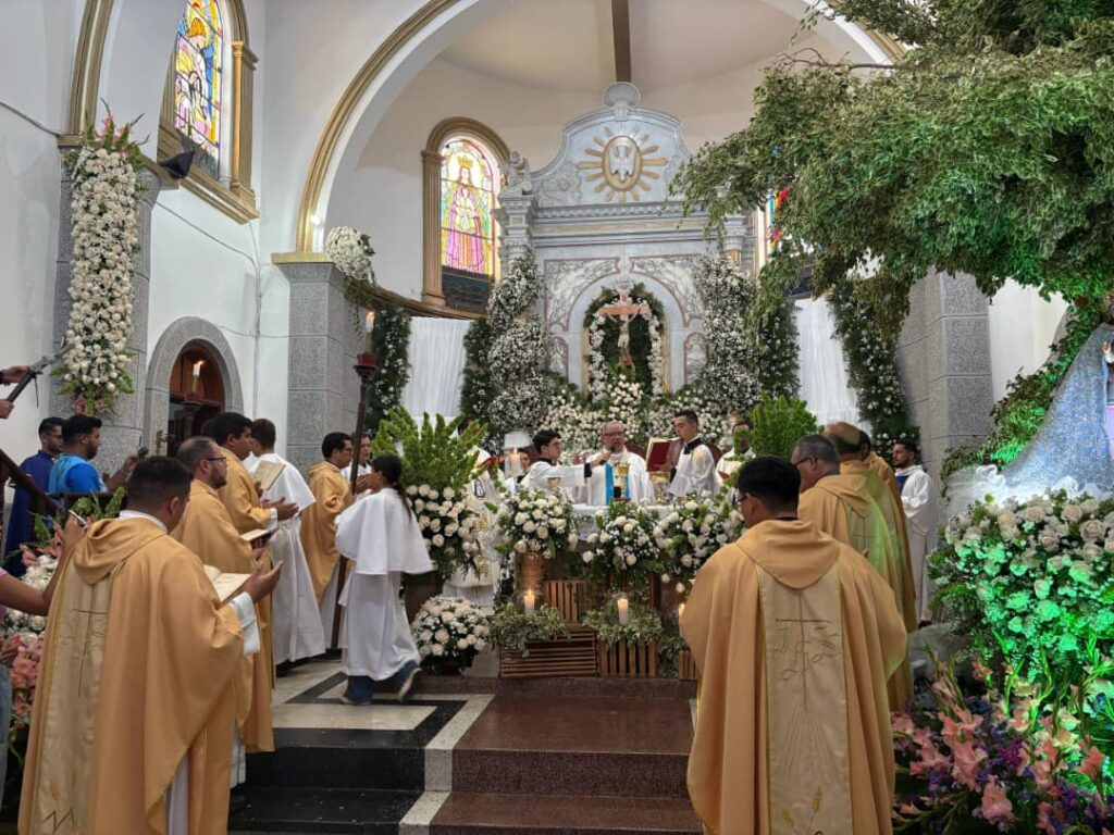 El día central, inició con repique de campanas y fuegos artificiales que anunciaban la alegría de un pueblo profundamente mariano. Desde temprano, los devotos se congregaron en el templo para participar en la Santa Misa, que estuvo presidida por Monseñor Terán y concelebrada por el Pbro. Amílcar Lobo, párroco, junto a numerosos sacerdotes del clero merideño y varios padres tovareños que volvieron a su tierra natal para compartir la solemnidad.