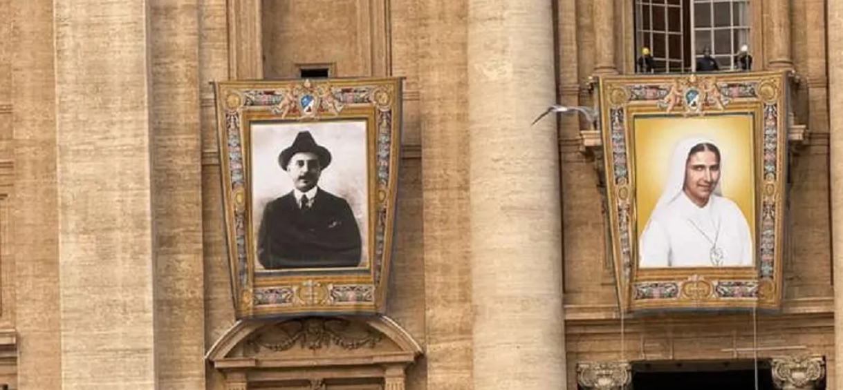 En la Basílica de San Pedro, el histórico templo católico de enorme tamaño y gran importancia religiosa y artística, ubicado en la Ciudad del Vaticano, se pudo apreciar en horas de la mañana una serie de lienzos relacionados con las imágenes de los nuevos santos que el papa León XIV canonizará el domingo.