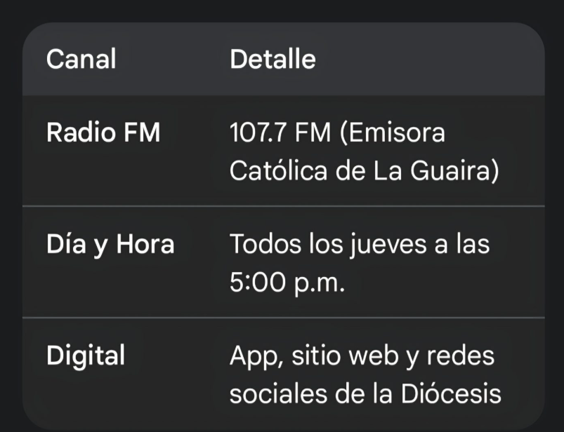 Este programa llega a la Diócesis de La Guaira tras una exitosa trayectoria iniciada en La Dolorita y consolidada en Valencia, La Guajira y su previo pastoreo en Guasdualito. Se reafirma así como un espacio esencial de comunión y comunicación entre el pastor y su grey.