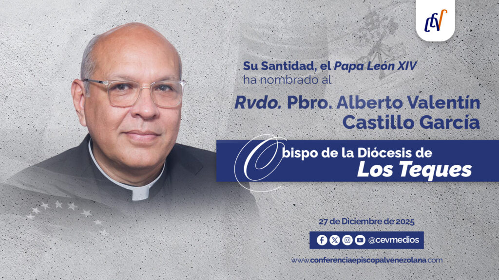 La Nunciatura Apostólica en Venezuela informa que Su Santidad el Papa León XIV ha nombrado al Revdo. Pbro. Alberto Valentín Castillo García como Obispo de la Diócesis de Los Teques. Hasta el momento, el sacerdote se desempeñaba como Vicario General de la Diócesis de La Guaira y Párroco de la Parroquia San Francisco de Asís en Naiguatá.