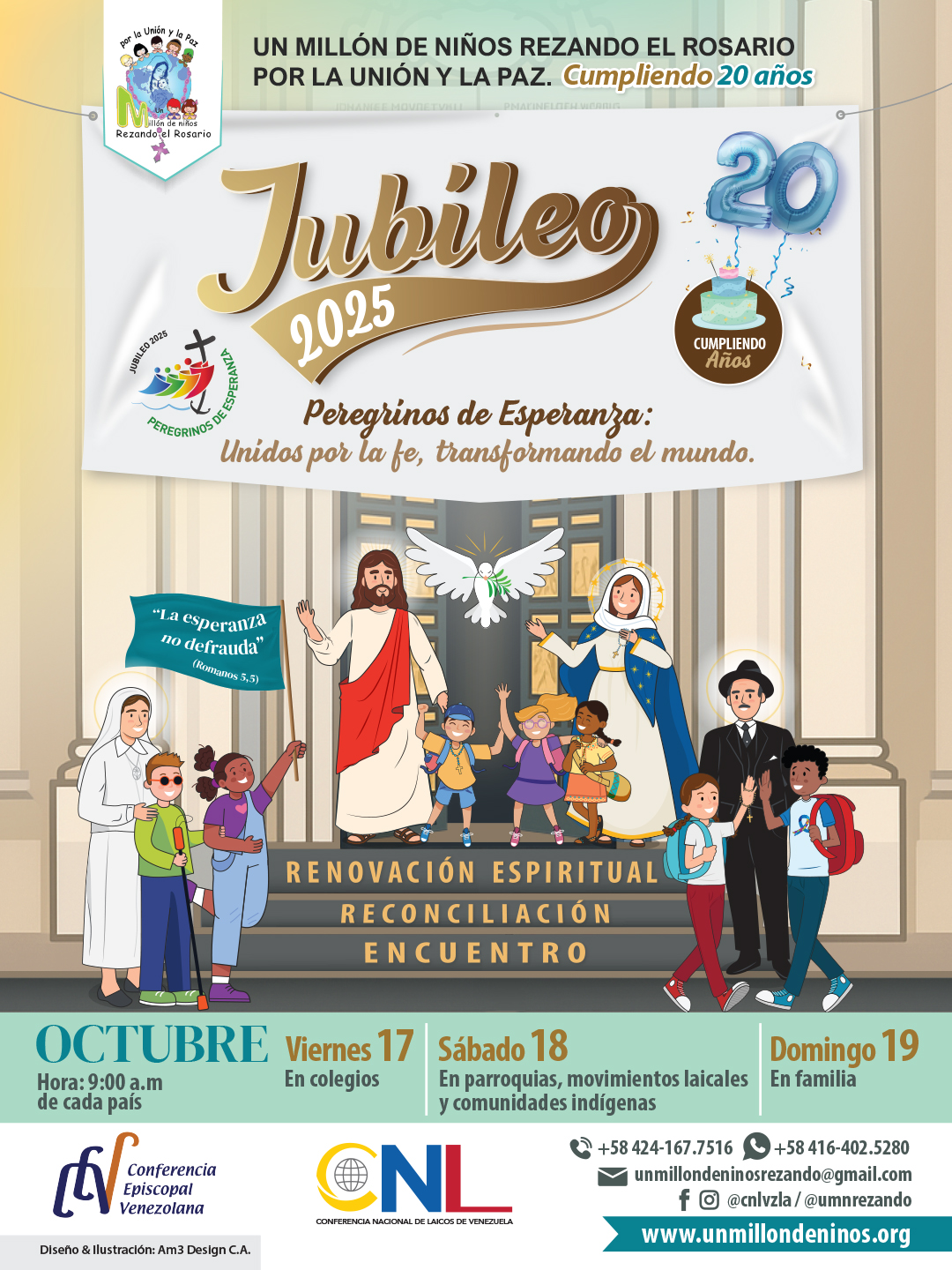 Con entusiasmo renovado y una profunda convicción espiritual, la Conferencia Nacional de Laicos de Venezuela anuncia oficialmente las fechas de la jornada mundial Un Millón de Niños Rezando el Rosario por la Unión y la Paz, que este año celebra dos décadas de historia como programa permanente de oración impulsado por el compromiso de los laicos venezolanos.